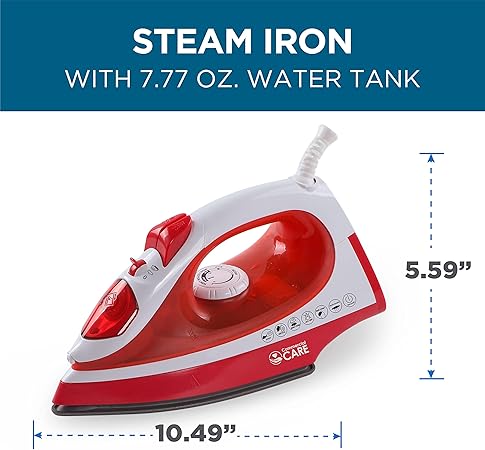 Commercial Care CCSI300 Steam Iron 1200 Watt Portable Steam Iron with 7.4 Ounce Water Tank Comfort Grip Nonstick Soleplate