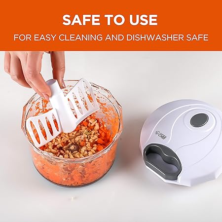 The Commercial Chef CH1502 Food Chopper and Food Mixer delivers versatile kitchen functionality in a compact handheld design It is engineered to chop vegetables fruits herbs and nuts as well as mix ingredients like flour and eggs efficiently Its three stainless steel blades provide precise consistent results while the insertable plastic mixer allows for quick blending of small quantities The ergonomic handle ensures comfortable operation and safe handling Its lightweight construction makes it easy to store and transport while the durable materials provide long lasting performance The convenient locking lid prevents spills and enhances safety making it ideal for quick meal prep tasks in small kitchens dorm rooms or busy households