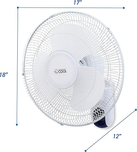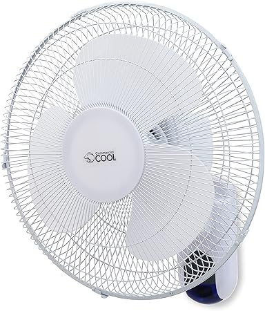 The Commercial Cool 16-Inch Wall Fan CCFWR16W delivers powerful high velocity airflow to rapidly cool residential and commercial spaces It features three speed settings with adjustable tilt and oscillation allowing precise control over directional airflow The included remote control provides convenient operation from a distance enhancing comfort and usability Its compact lightweight design weighing approximately 4.94 pounds allows easy wall mounting and repositioning The durable construction ensures long lasting reliable performance suitable for home office workshop garage or utility areas The fan operates quietly making it unobtrusive in any environment while delivering effective cooling when needed