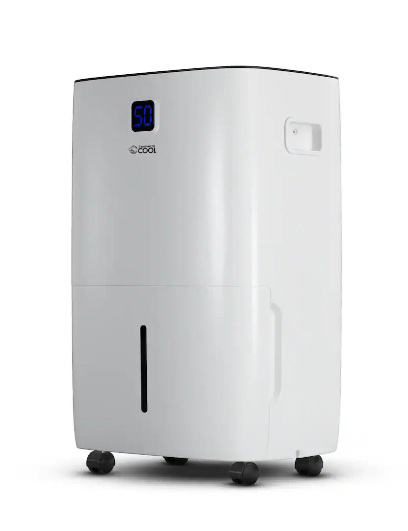 Commercial Cool 50 Pint Dehumidifier CCD50JW with Adjustable Humidistat Continuous Drainage and Electronic Control Panel Portable Dehumidifier