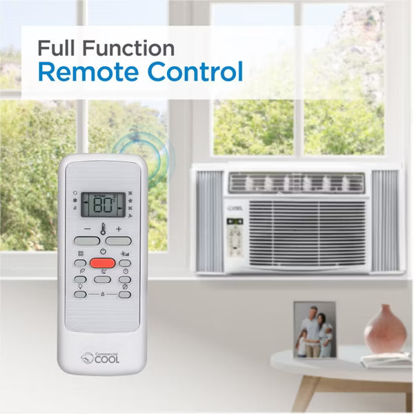The Commercial Cool CWAM145W6C 14,500 BTU Window Air Conditioner delivers powerful efficient cooling for rooms up to 700 square feet Its 115 volt design ensures compatibility with standard home outlets while energy efficient operation reduces electricity usage The full function remote allows easy adjustment of temperature fan speed and operating modes while the adjustable thermostat provides precise climate control The 3 cooling speeds and 4 modes including cool auto dry and fan offer versatile cooling solutions Its compact design fits standard window openings making it ideal for apartments dorm rooms or medium sized living spaces providing reliable comfort during warm weather
