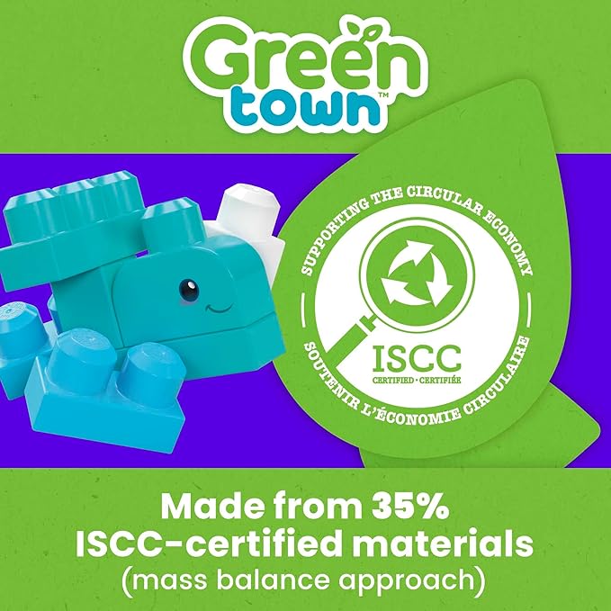 MEGA BLOKS Fisher‑Price Green Town Ocean Time Clean Up Building Blocks Set 70 Pieces 3 Character Figures for Eco‑Friendly Toddler Play