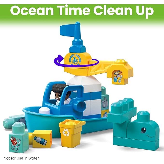 The MEGA BLOKS Fisher Price Green Town Ocean Time Clean-Up set offers young children an imaginative and hands-on introduction to eco-conscious play through colorful block building and storytelling. With seventy easy-to-handle pieces and three character figures this set encourages fine motor development and creative thinking as children construct ocean themed scenes and engage in clean up adventures. Designed to promote awareness of environmental responsibility the set invites toddlers to explore concepts of teamwork sustainability and care for the planet while developing early spatial and problem-solving skills. Crafted from thoughtful materials and made to be safe for little hands the blocks connect securely yet separate easily ensuring frustration-free play. Ideal for solo or cooperative play the Ocean Time Clean Up set blends early learning with meaningful values creating a foundation for both fun and socially aware growth.