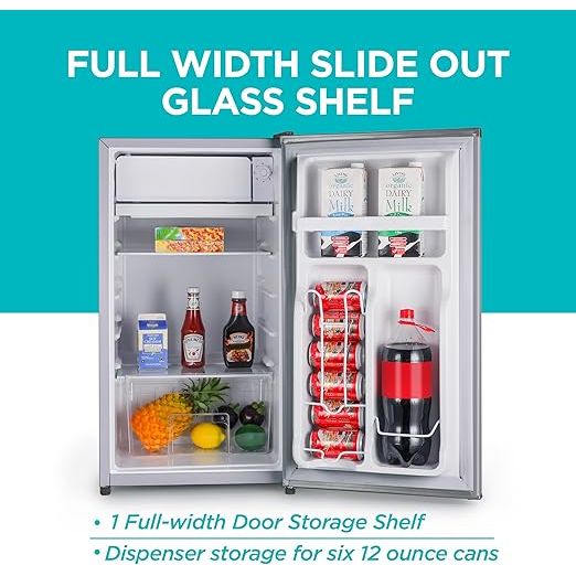 The BLACK+DECKER BCRK32B Compact Refrigerator provides ample storage in a small footprint featuring a 3.2 cubic foot interior with a full freezer compartment and adjustable shelves designed to organize beverages snacks and perishables efficiently It operates quietly and meets ENERGY STAR standards ensuring low energy consumption The reversible door hinge allows flexible placement in tight spaces while the R600a refrigerant delivers reliable cooling performance with reduced environmental impact making it ideal for dorm rooms offices apartments or secondary kitchens The manual defrost system simplifies maintenance providing a durable convenient solution for everyday refrigeration needs