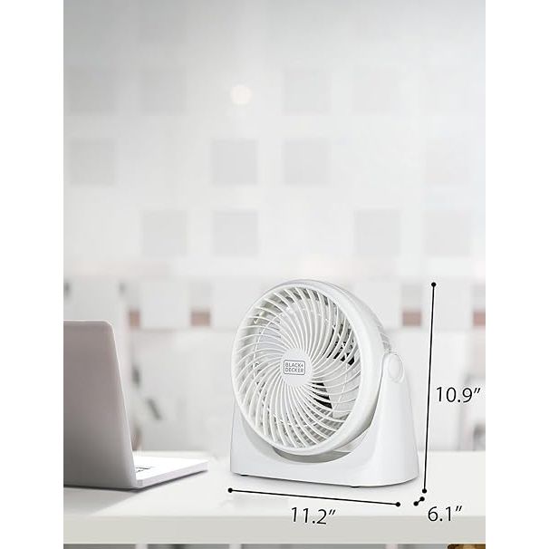 The Black+Decker BFTU107 7-Inch Turbo Desk Fan delivers efficient personal cooling for small spaces Its compact design allows convenient placement on desks tables or countertops while providing strong consistent airflow The adjustable tilt head enables precise directional control of airflow for targeted comfort Its lightweight portable construction allows easy relocation between rooms and quiet operation ensures minimal disruption in offices bedrooms or workspaces The durable motor and housing provide long-term reliable performance maintaining consistent airflow and enhanced comfort
