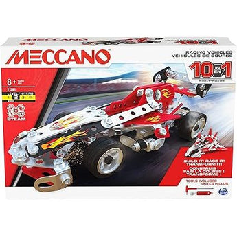 Meccano 10-in-1 Racing Vehicles STEM Model Building Kit with 225 Pieces and Real Tools for Kids Ages 8+