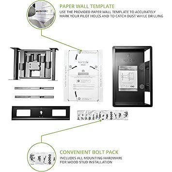 The Kanto R500 Recessed Full Motion TV Wall Mount combines minimalist design with full functionality allowing the television to sit nearly flush with the wall while the articulating arm extends twenty seven point six inches swivels ninety degrees and tilts ten degrees forward or five degrees backward for optimal viewing angles its solid steel construction supports forty six to eighty inch TVs up to one hundred thirty five pounds and accommodates VESA patterns from one hundred by one hundred to six hundred by four hundred millimeters cable routing pathways and clips keep wires organized and installation is simplified with included hardware a paper template and online step by step video ensuring a clean and professional setup