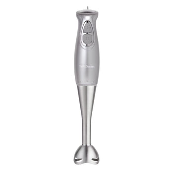 The Betty Crocker BC-4306SK is a powerful 2-speed immersion hand blender designed to simplify your kitchen tasks. It features a robust 250-watt motor capable of handling chopping pureeing dicing and emulsifying with ease. The ergonomic handle ensures comfortable grip and reduces hand fatigue during extended use. Its stainless steel blending shaft and included electric whisk allow you to create a variety of textures while the chopper bowl and 600mL beaker provide convenient preparation and storage solutions. Dishwasher-safe components make cleanup effortless and the long blending shaft allows you to work in taller pots and bowls with maximum efficiency. This versatile hand blender is perfect for everyday cooking and professional meal preparation offering precision control and reliable performance.