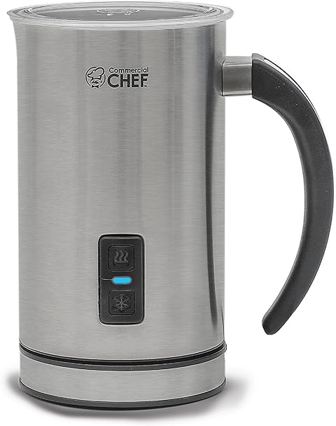Commercial Chef 13-Oz. Cordless Milk Frother CHMF08S One-Touch Operation Hot and Cold Milk Brushed Stainless Steel Non-Stick Interior Detachable Power Base Non-Slip Silicone Feet