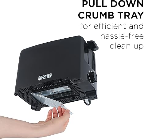 The Commercial Chef CCT2201B 2-Slice Mechanical Toaster is a compact and efficient countertop appliance designed to provide reliable and consistent toasting for a variety of breads and baked goods. Its extra-wide 0.94-inch slots accommodate thick slices bagels and artisan breads while six browning levels allow precise control over toasting preferences. The toaster features a cancel function for immediate stopping of the cycle and an extra-lift lever for safe removal of smaller items. The cool-touch housing ensures safe handling during operation and the pull-down crumb tray simplifies cleaning and maintenance. Its compact design makes it ideal for small kitchens apartments or office use while delivering dependable performance for everyday toasting needs.
