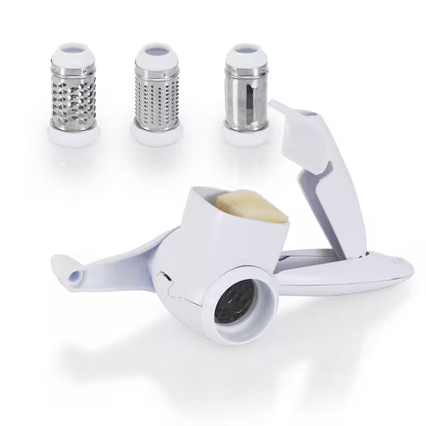 Commercial Chef Mini Hand Held Grater CH1530 2-in-1 Manual Rotary Cheese Grater with Interchangeable Stainless Steel Blades