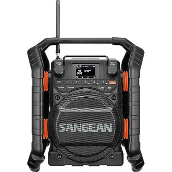The Sangean U7HD rugged jobsite Bluetooth AM/FM HD digital radio delivers powerful audio performance and reliable operation in demanding environments. Designed for durability it features dustproof and waterproof construction to withstand outdoor and industrial conditions. Bluetooth connectivity allows wireless streaming from smartphones tablets or other devices while the auxiliary input provides versatile wired options. The built-in rechargeable battery ensures hours of portable operation and convenient use on the go. Large easy-to-read display and intuitive controls provide quick access to stations modes and volume settings. Compact and sturdy design makes it suitable for job sites workshops or outdoor activities offering both durability and high-quality sound performance wherever it is used.