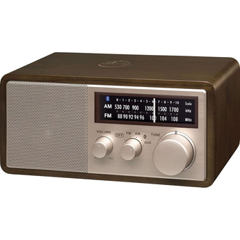 The Sangean WR16 combines classic wooden cabinet design with modern technology featuring Bluetooth 4.1 with NFC for effortless device pairing. Exceptional reception sensitivity delivers static-free AM/FM listening while dynamic bass compensation ensures rich clean audio through its powerful 3" 10-watt speaker. User-friendly operation is achieved through three intuitive dial knobs for volume control and mode selection. Additional features include USB phone charging capability (in standby mode) and an included external FM wire antenna for optimal signal reception.